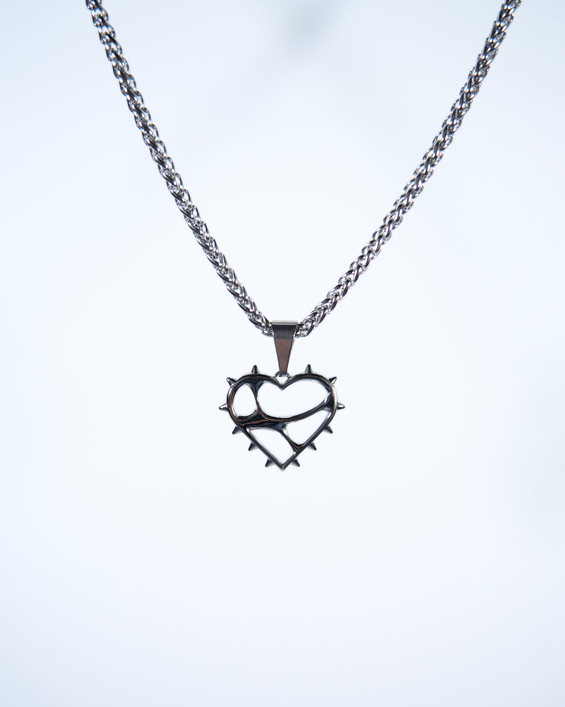 Asylum Necklace is a stainless steel chain necklace featuring a heart pendant.